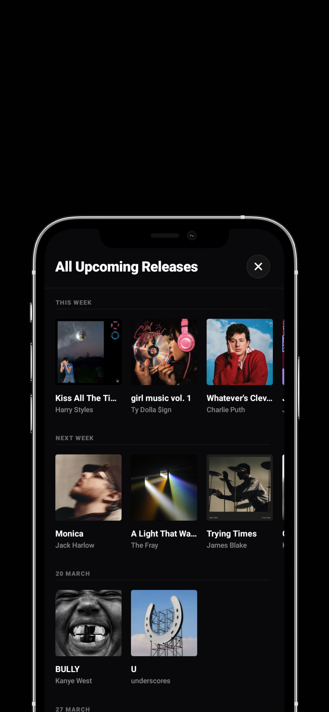 A dedicated home for the future of music. View all upcoming albums, integrated directly into your navigation and sharing exports.